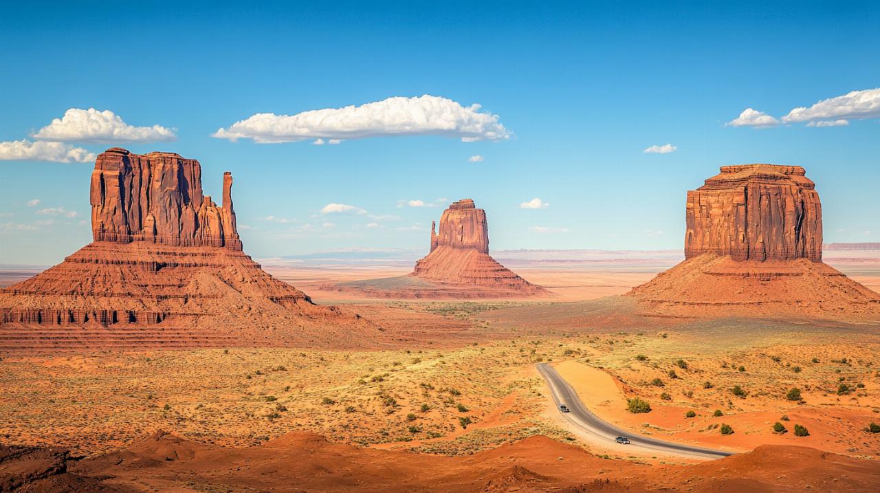 Monument Valley se trouve à 372 kilomètres du Grand Canyon et constitue une étape incontournable du circuit. Ce site emblématique, administré par les Indiens Navajos, présente des formations rocheuses célèbres qui ont servi de décor à d'innombrables films westerns et campagnes publicitaires. Les voyageurs y passent une nuit, permettant d'admirer le lever ou le coucher du soleil sur ces monolithes majestueux qui se dressent dans le désert.